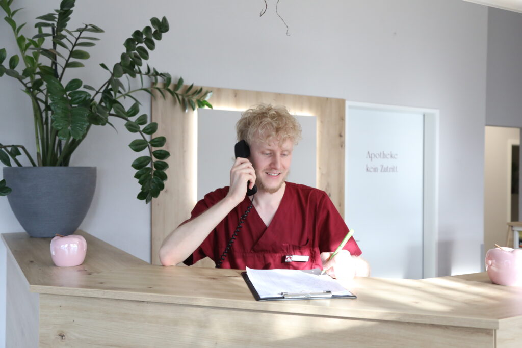 Das großzügige Wartezimmer mit Empfangsbereich bietet die Möglichkeit, Hund und Katze getrennt voneinander zu halten, um unnötigen Stress für Ihren Vierbeiner zu vermeiden.